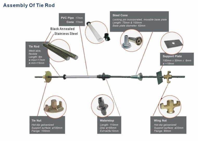 A rod system is a system used in various construction and industrial applications to provide support and stability to components or structures using long metal rods (or bars). These rods are installed vertically or horizontally, as needed, to carry or transfer loads or to stabilize temporary and permanent structures.